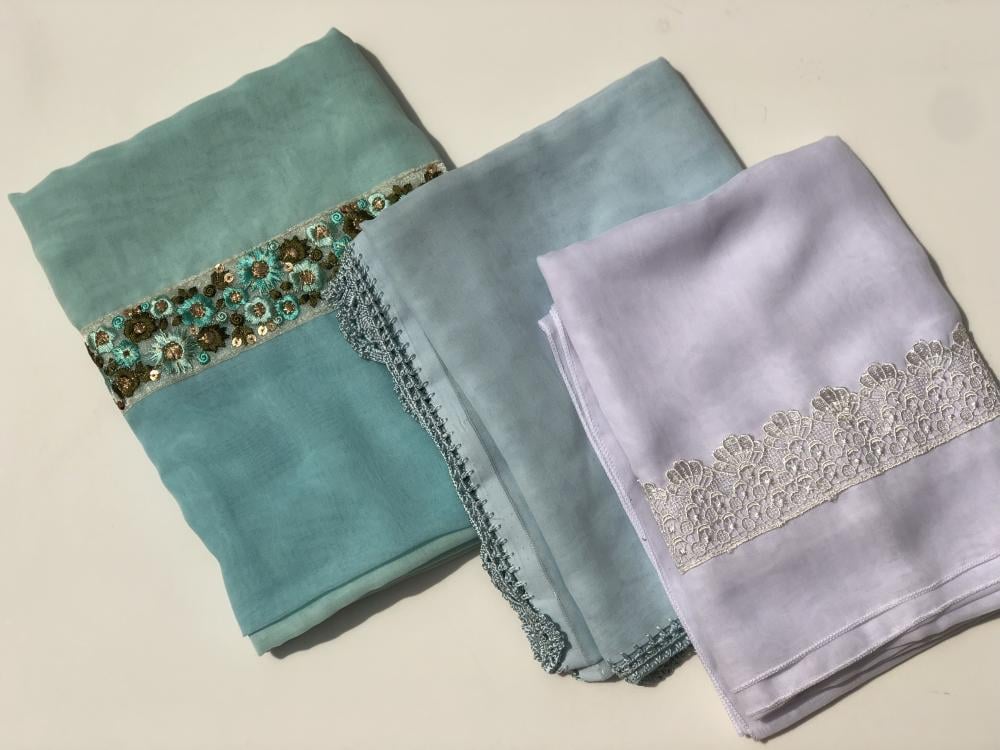 طرحة لنن بتطريز على طول الطرحة لون تيفاني