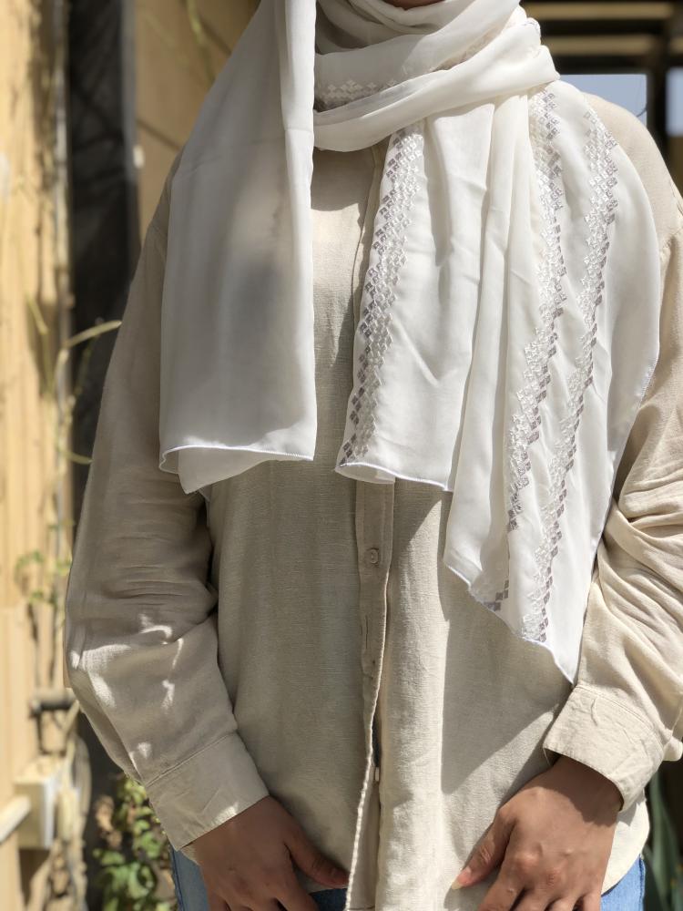 طرحة بوال بتطريز بطول الطرحة لون اوف وايت