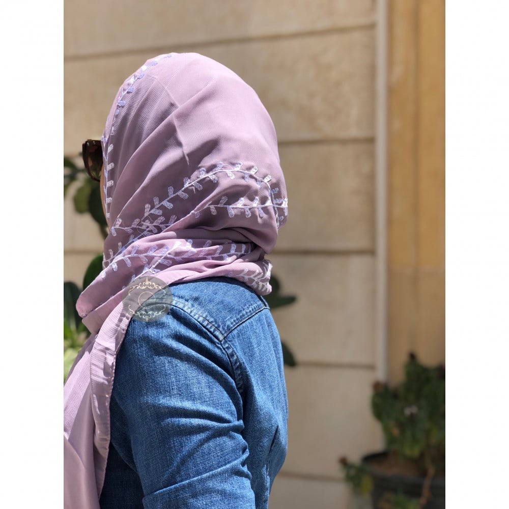 طرحة ليزر لون وردي بتطريز على طول الطرحة