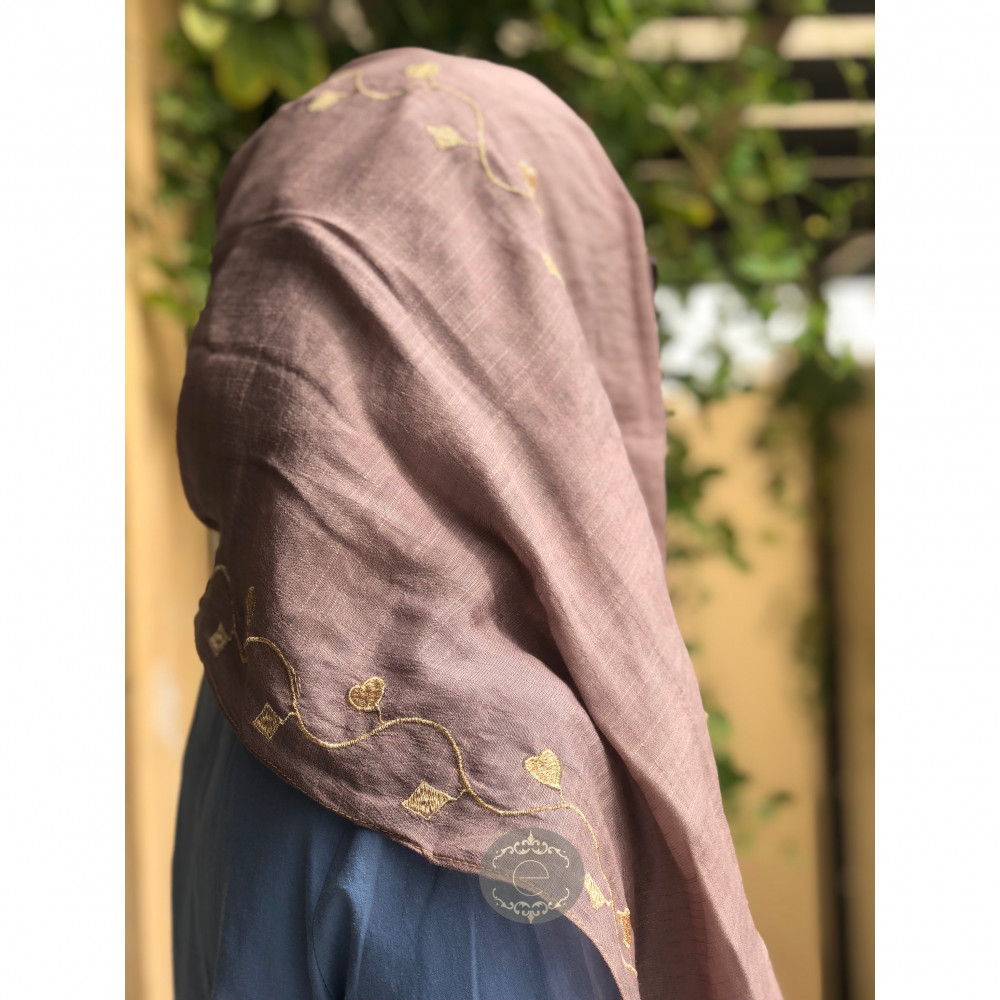 طرحة لنن لون بيج بتطريز انيق بطول الطرحة