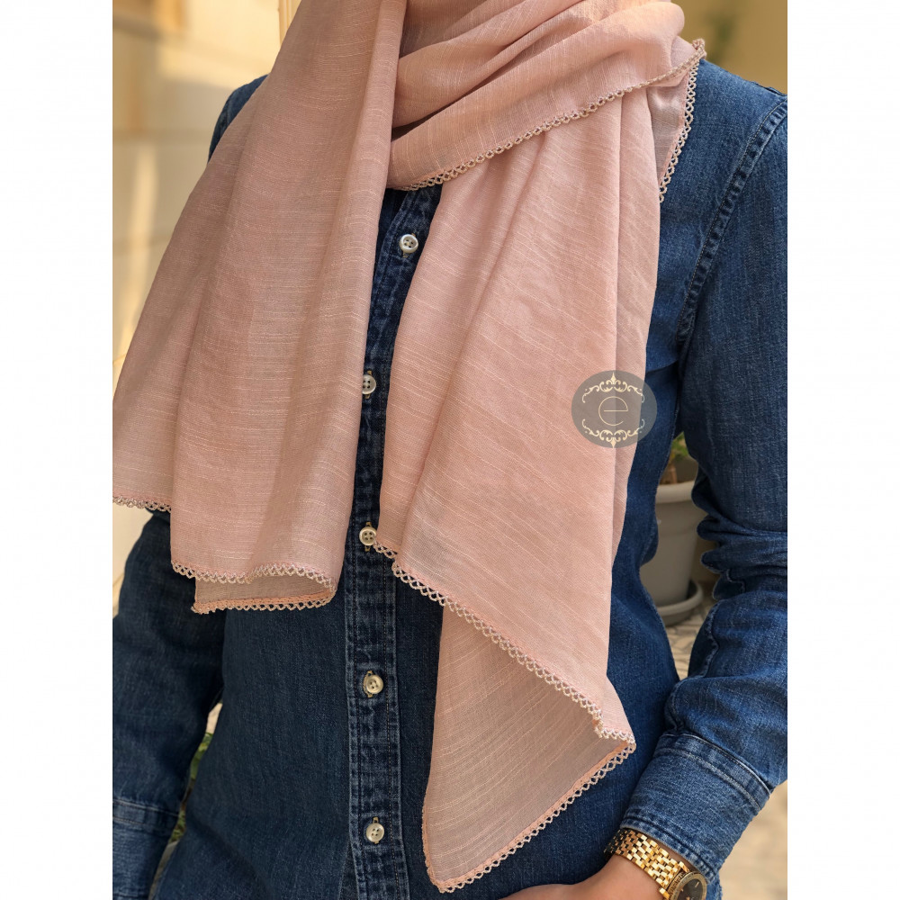 طرحة لنن لون كاكي بتطريز انيق بطول الطرحة