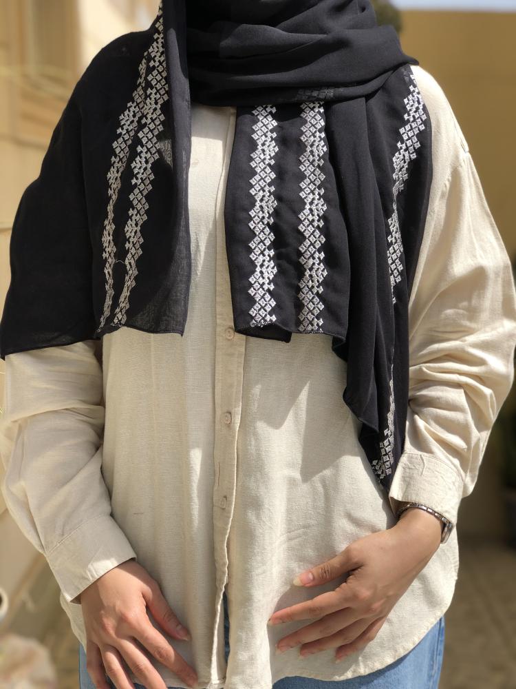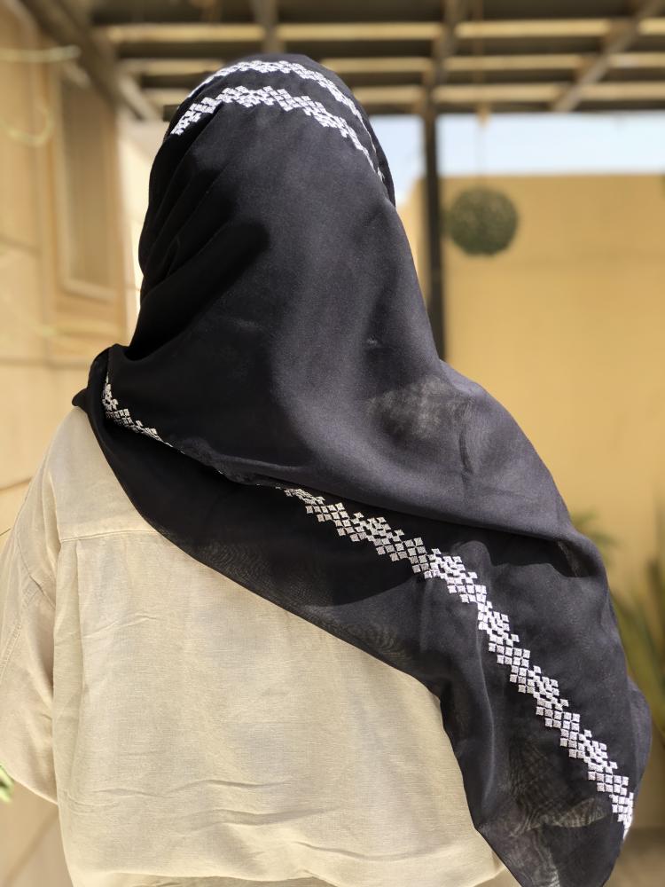 طرحة بوال بتطريز بطول الطرحة لون اسود