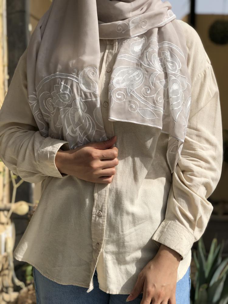 طرحه بوال لون زيتي بتطريز انيق ومميز