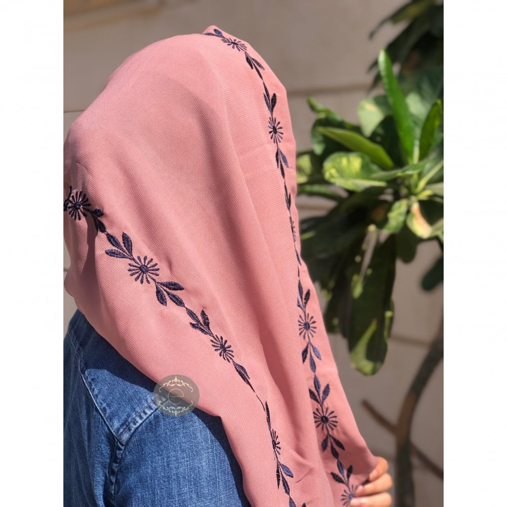 طرحة بوال لون بنك بتطريز بطول الطرحة
