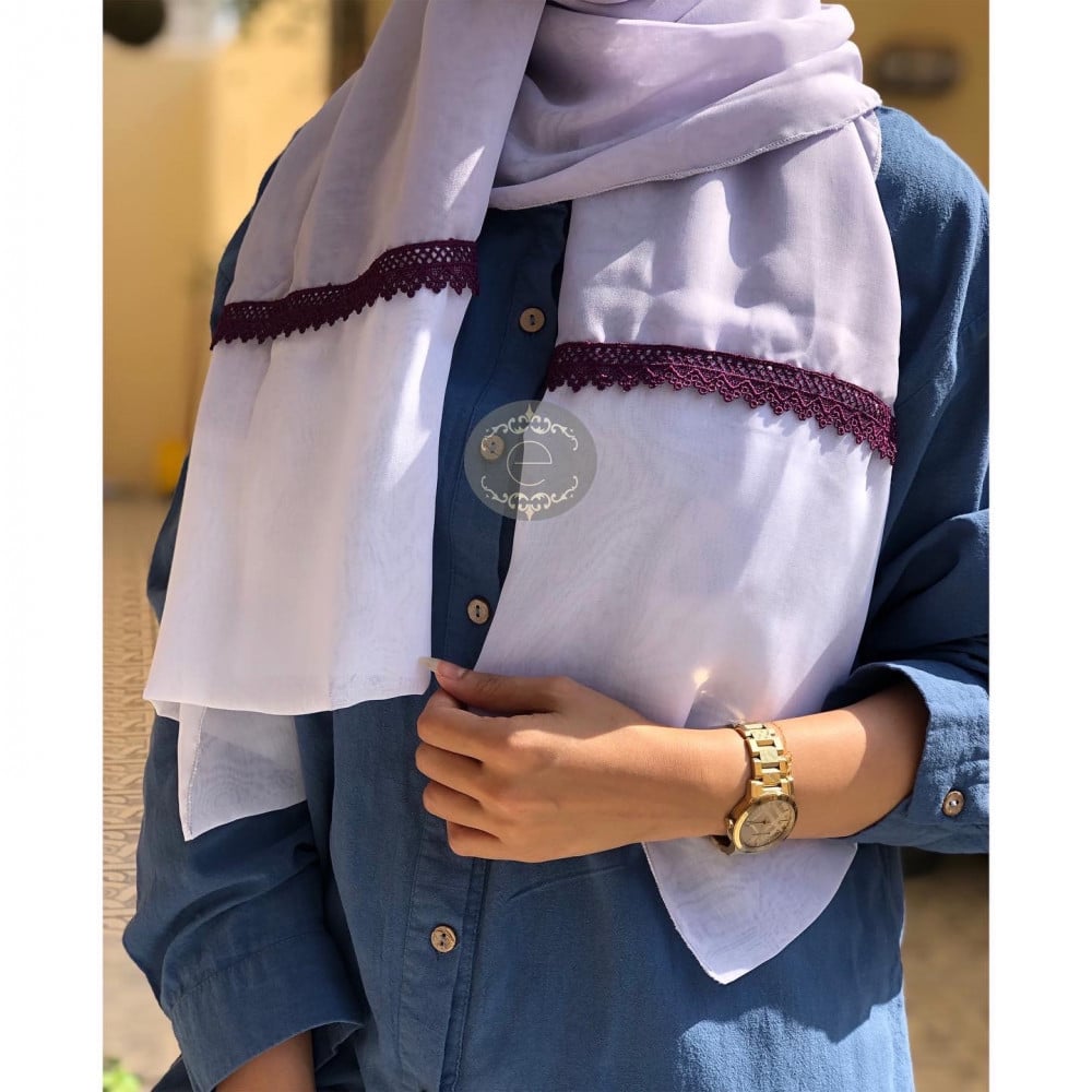 طرحة بوال لون موف فاتح مع ابيض بشريط بنفسجي