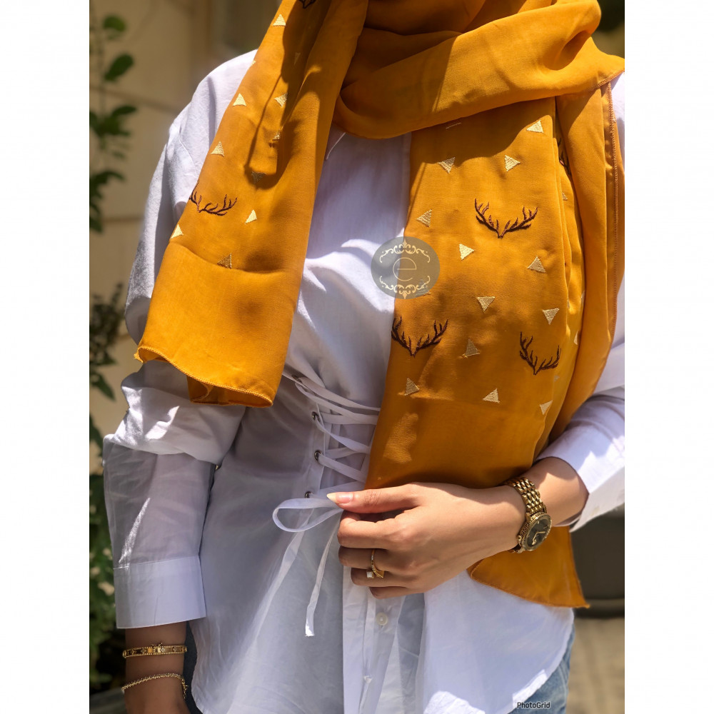 طرحة بوال لون كركمي بتطريز على شكل قرن الغزال