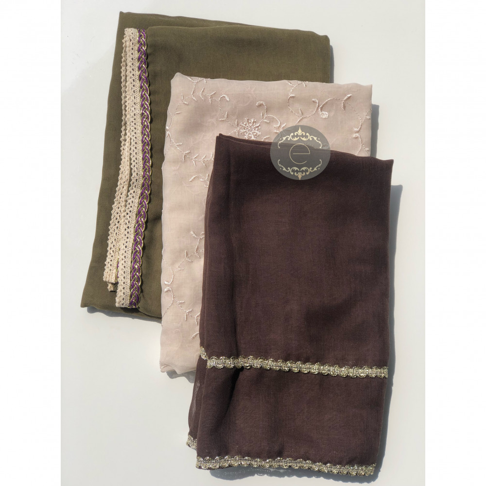 مجموعة 3 طرح (بني /بيج مطرزة /كموني)