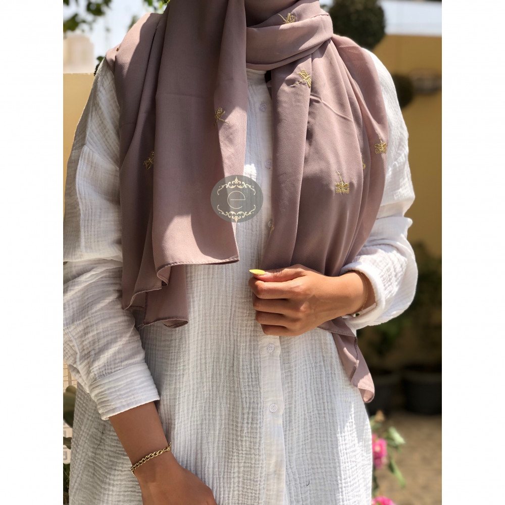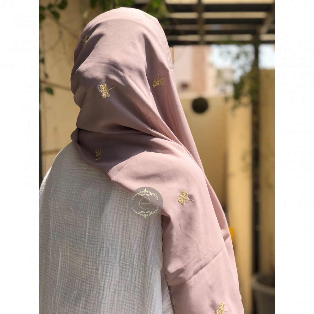 طرحة ليزر لون بيج بتطريز على طول الطرحة