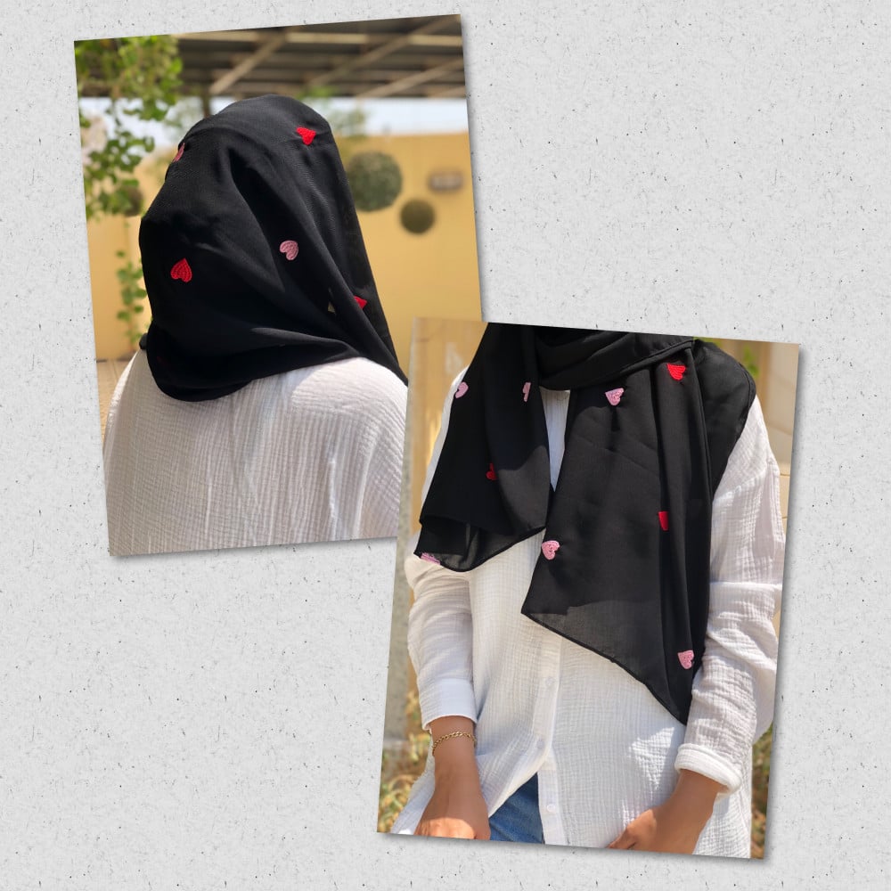 طرحة ليزر لون اسود بتطريز على طول الطرحة