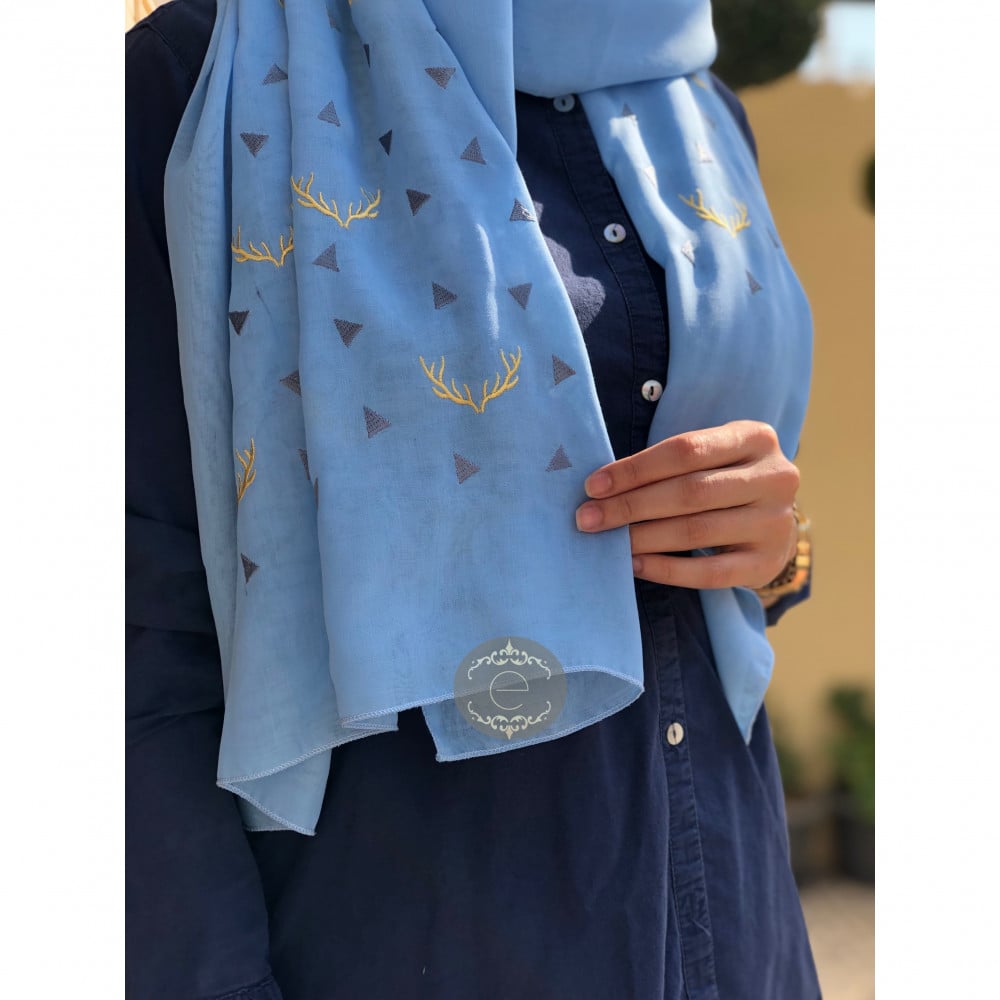 طرحة بوال لون سماوي مع تطريز على شكل قرن الغزال