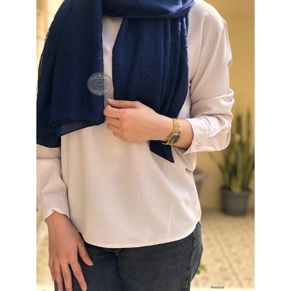 طرحه بوال بتطريز على شكل قرن الغزال لون منجي