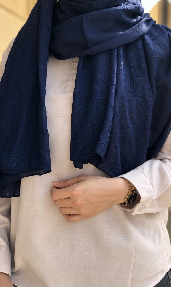 طرحة ليزر لون كحلي بتطريز على طول الطرحة