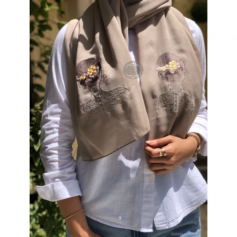 طرحة بوال لون بيج غامق بتطريز على شكل بنت