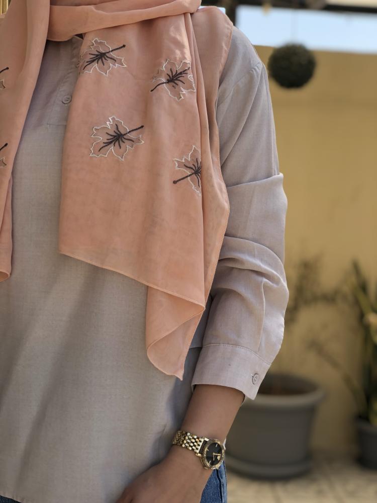 طرحه بوال لون بيج فاتح بتطريز انيق ومميز