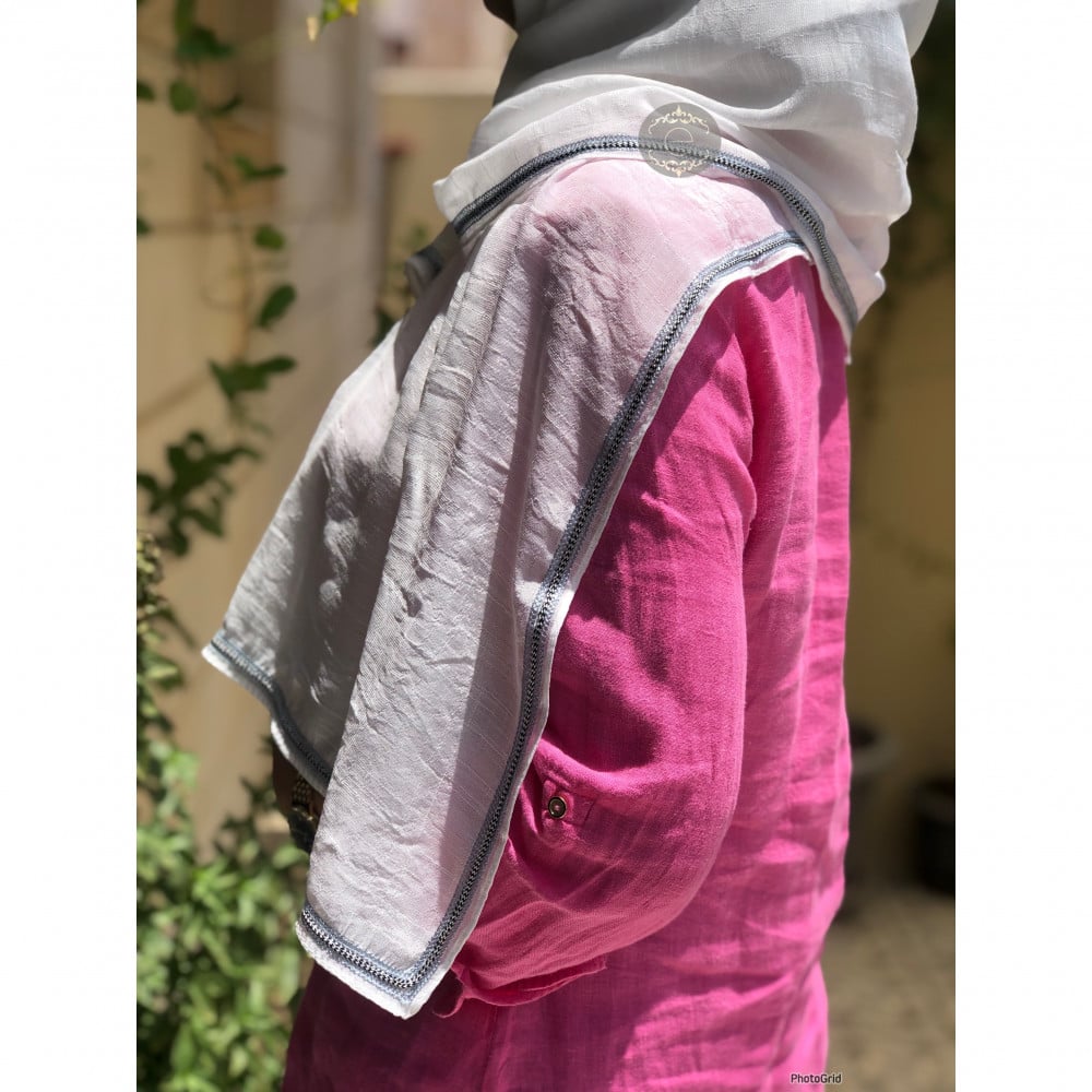 طرحة لنن لون ابيض بتطريز من 3 جهات