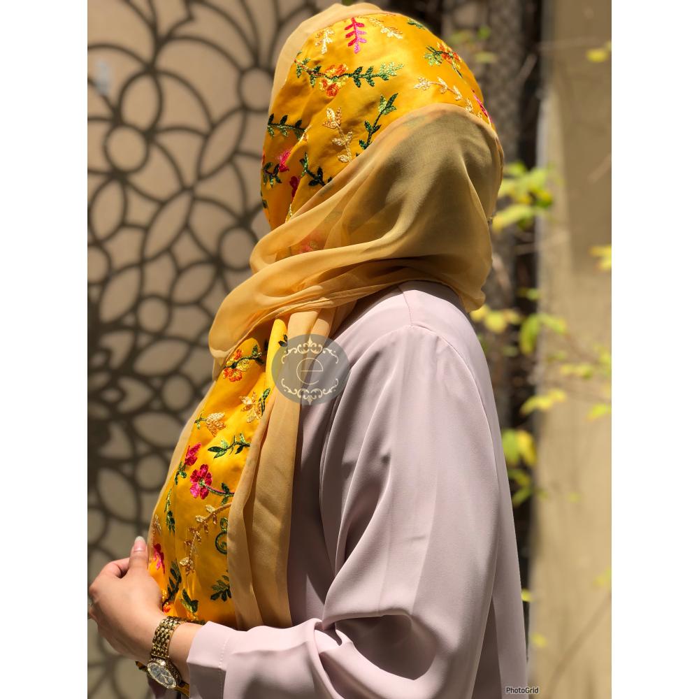 طرحة بوال بتطريز ورود من الطرفين لون بني