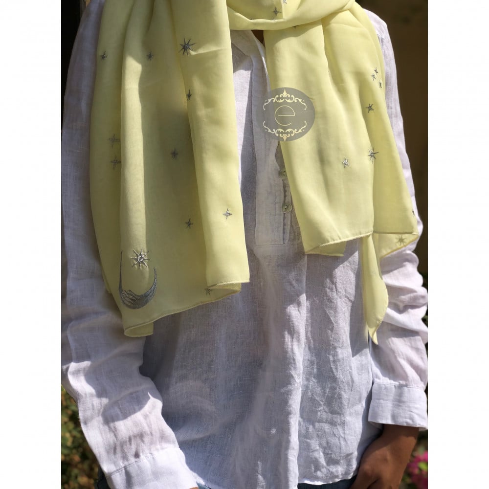 طرحة بوال لون ليموني بتطريز على شكل هلال ونجوم