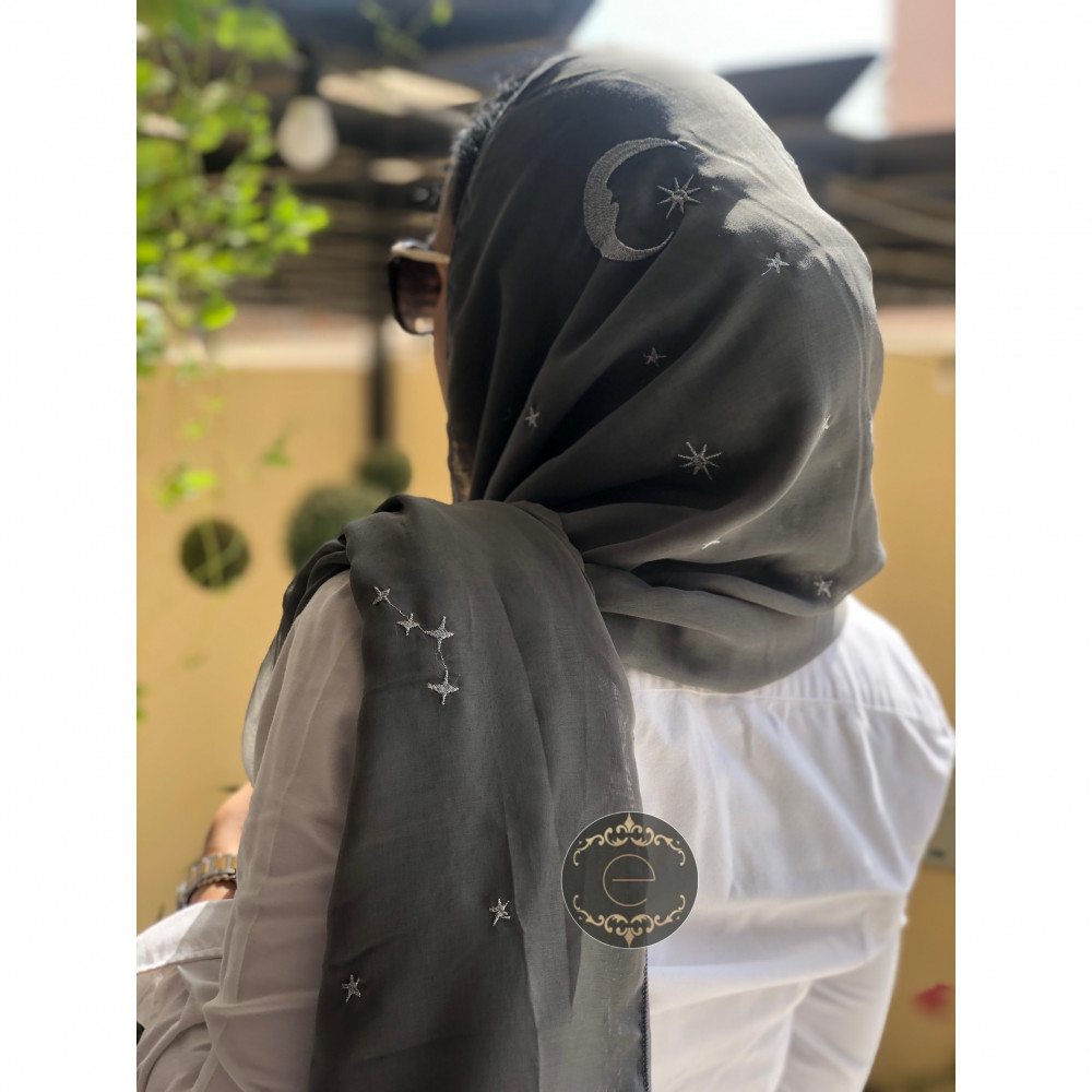 طرحه بوال بتطريز نجوم وهلال لون رمادي متوفر فاتح / غامق