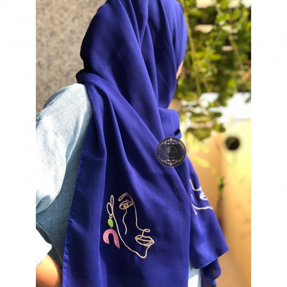 طرحة لنن لون بنفسجي بتطريز انيق بطول الطرحة