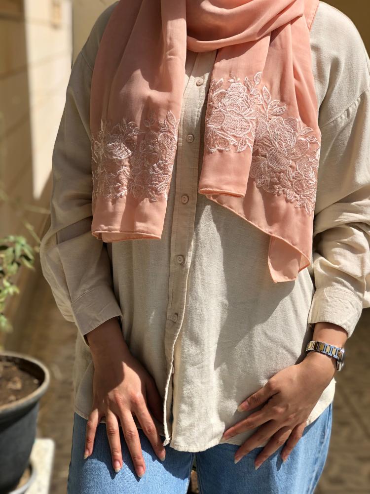 طرحة بوال لون خربزي بتطريز من الطرفين