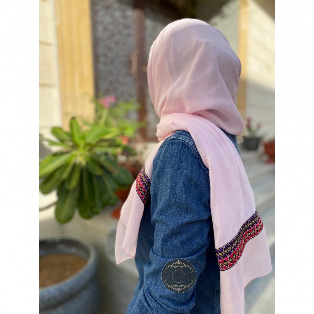 طرحة بوال لون بنك بتطريز من الطرفين
