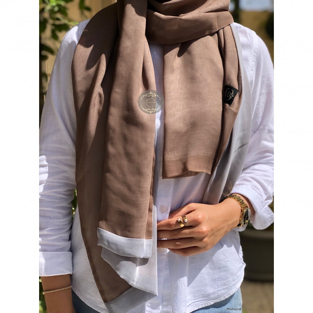 طرحة لنن لون بني بتطريز انيق بطول الطرحة