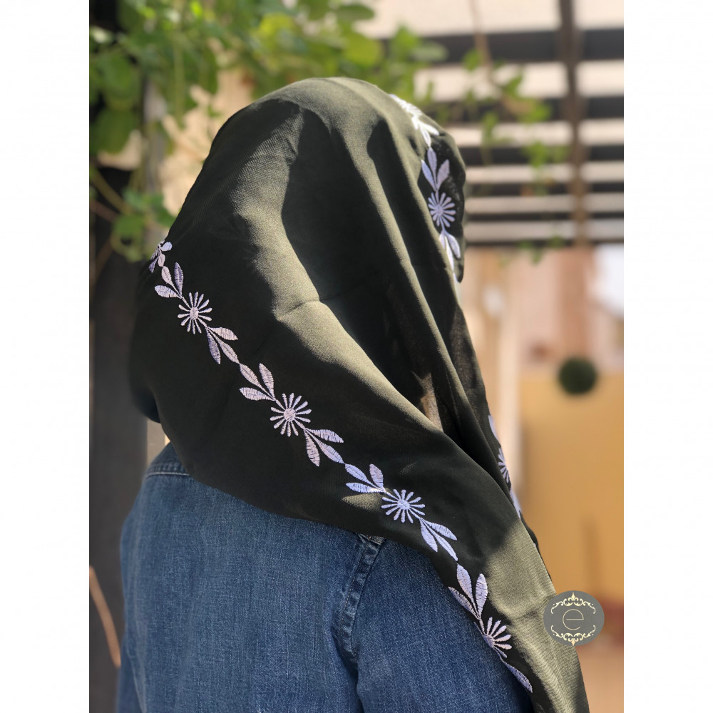 طرحة ليزر زيتي بتطريز على كامل الطرحة