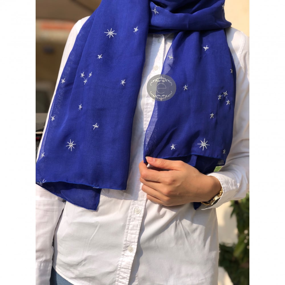 طرحة بوال لون نيلي بتطريز على شكل هلال ونجوم