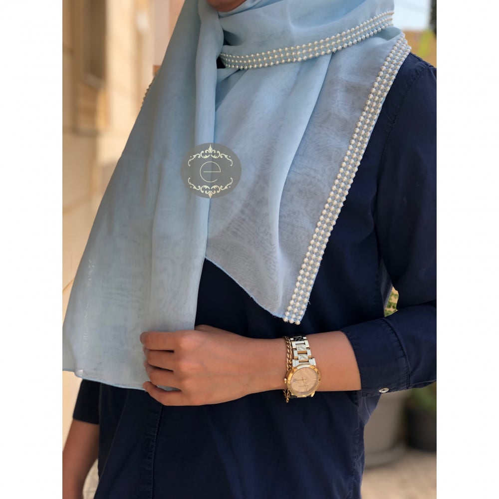 طرحة بوال سماوي مع لؤلؤ بطول الطرحة