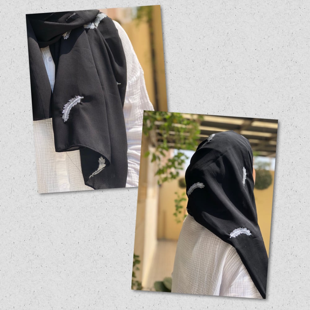 طرحة ليزر لون اسود بتطريز على طول الطرحة