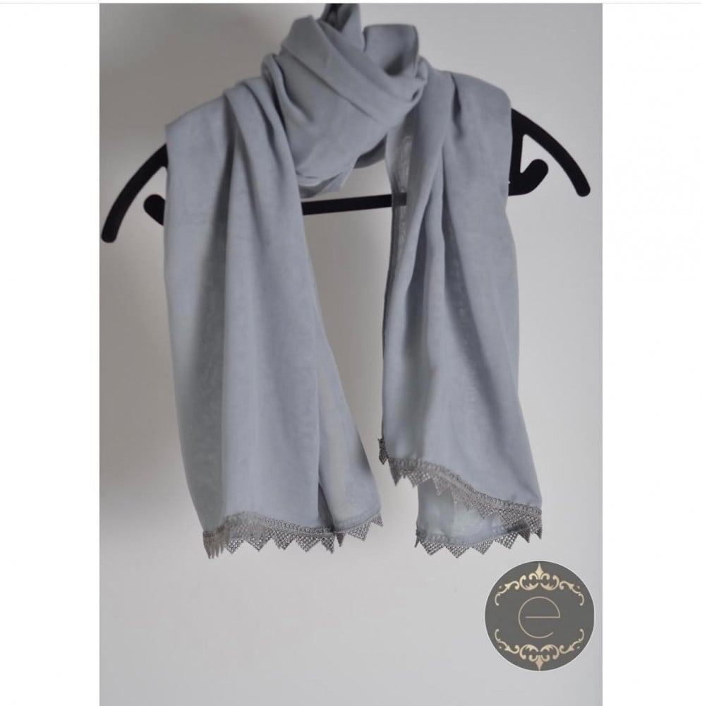 طرحة بوال ابيض مع دانتيل رمادي