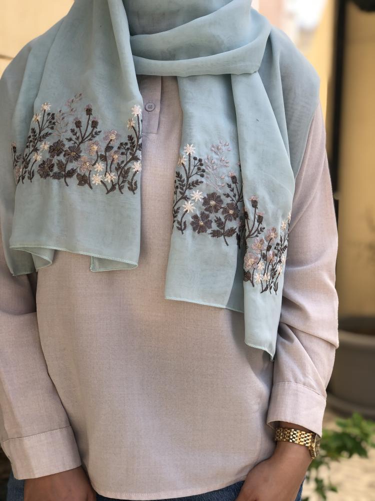 طرحة بوال لون تيفاني بتطريز من الطرفين