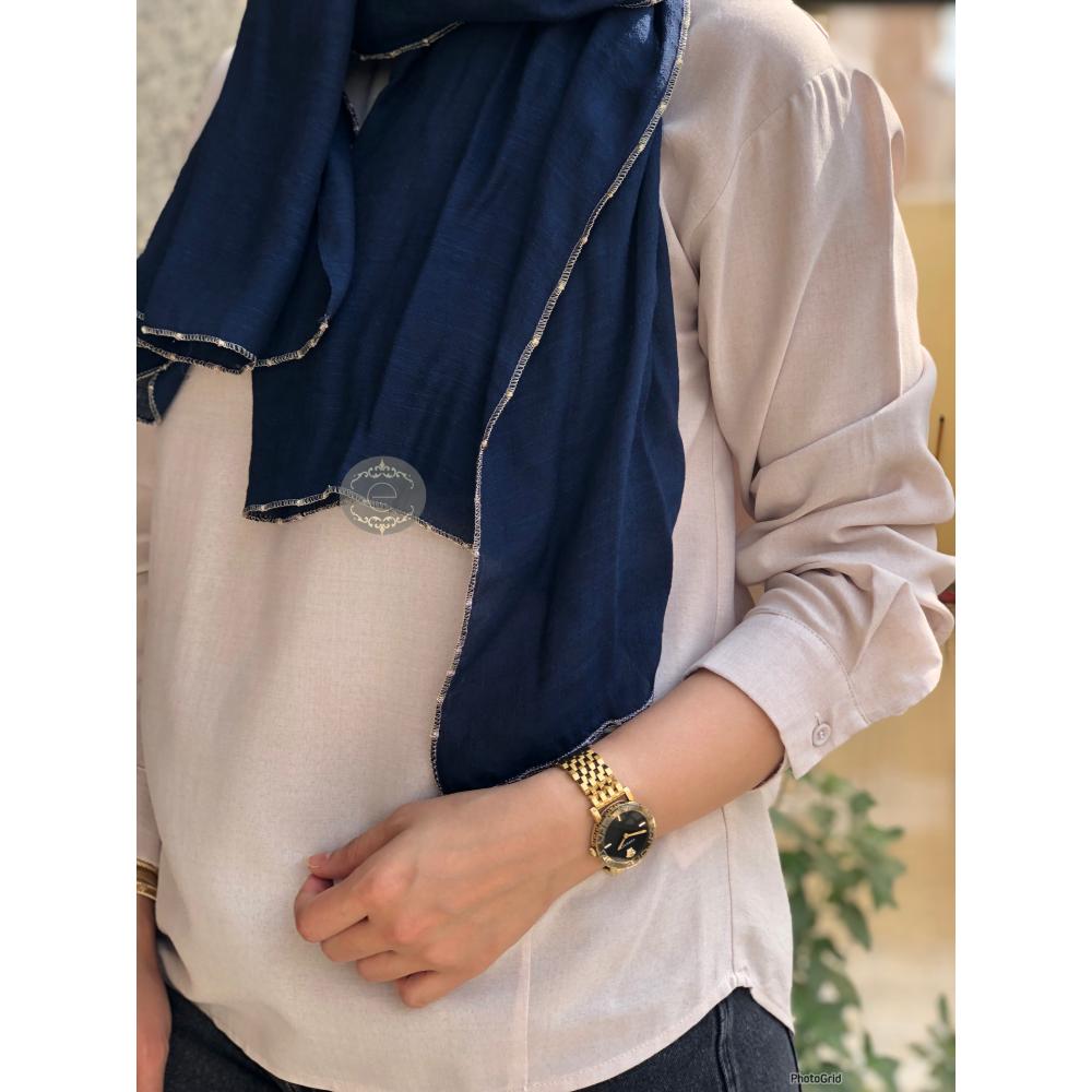 طرحة لنن لون كحلي بتطريز ناعم من الاطراف (