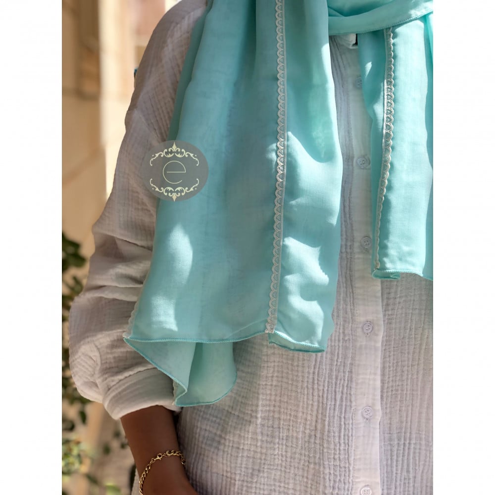 طرحة بوال لون تيفاني مع شريط اوف وايت