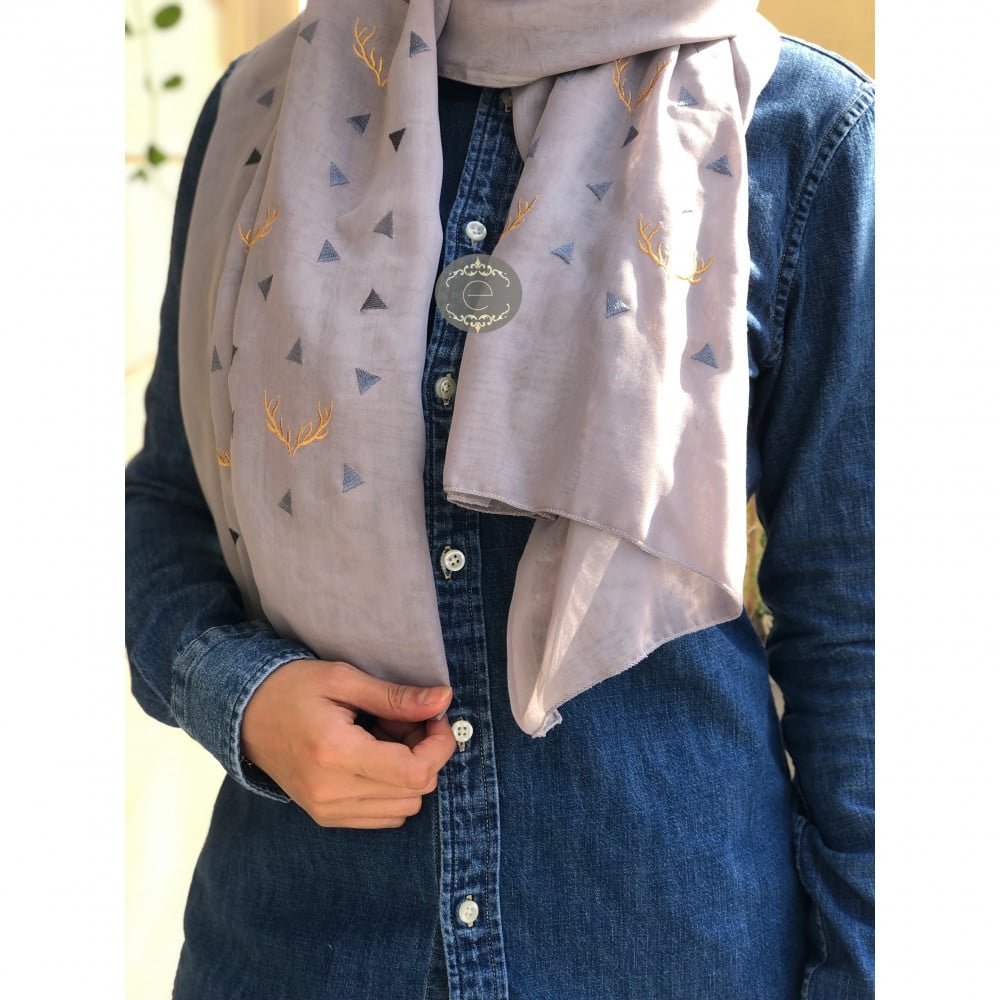 طرحه بوال بتطريز على شكل قرن الغزال لون رمادي