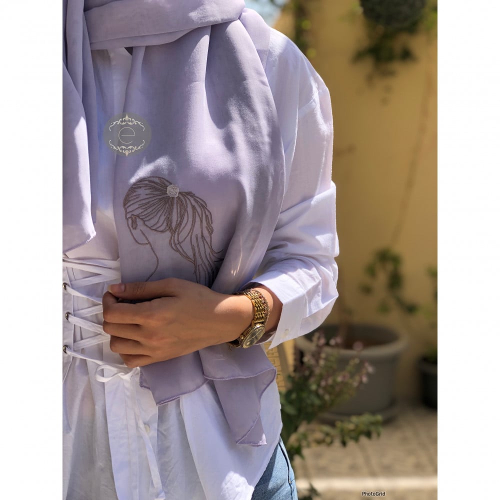 طرحة بوال لون موف فاتح بتطريز على شكل بنت