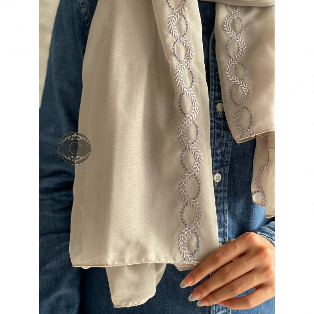 طرحه بوال لون بيج فاتح بتطريز انيق ومميز
