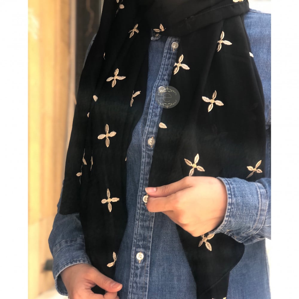 طرحة ليزر لون اسود مع تطريز كامل