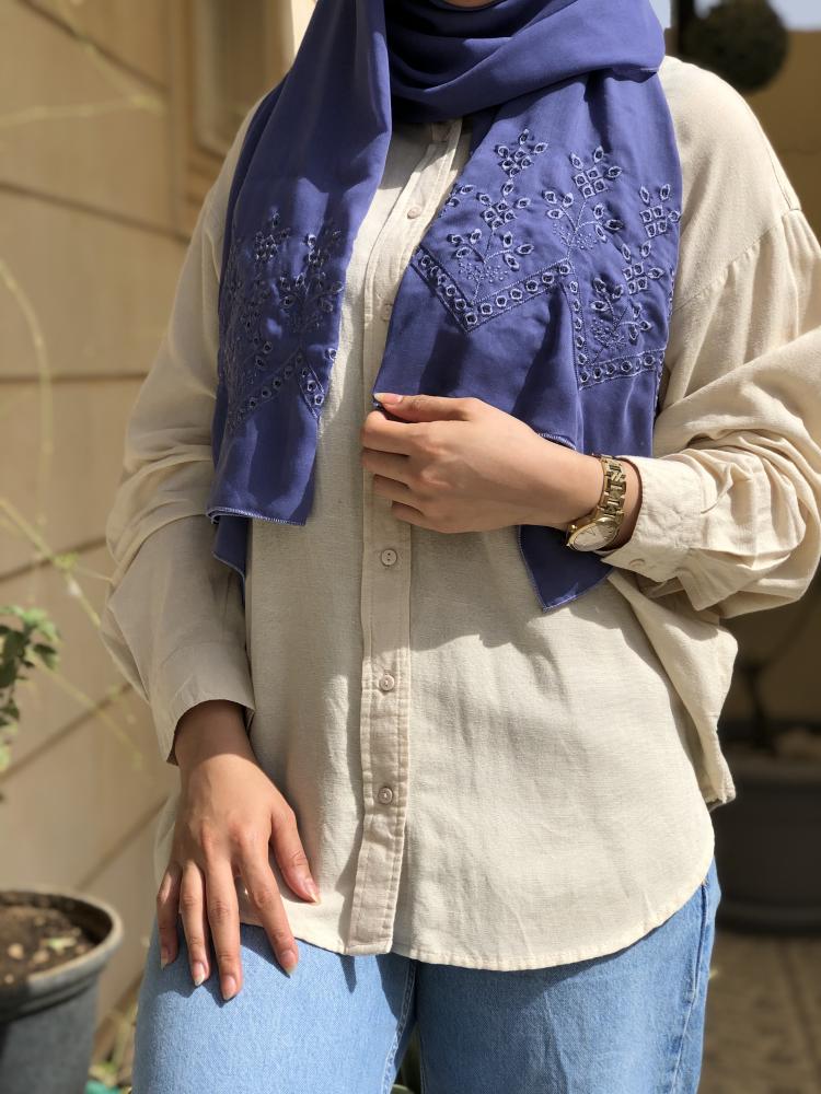 طرحة بوال لون أزرق بتطريز من الطرفين