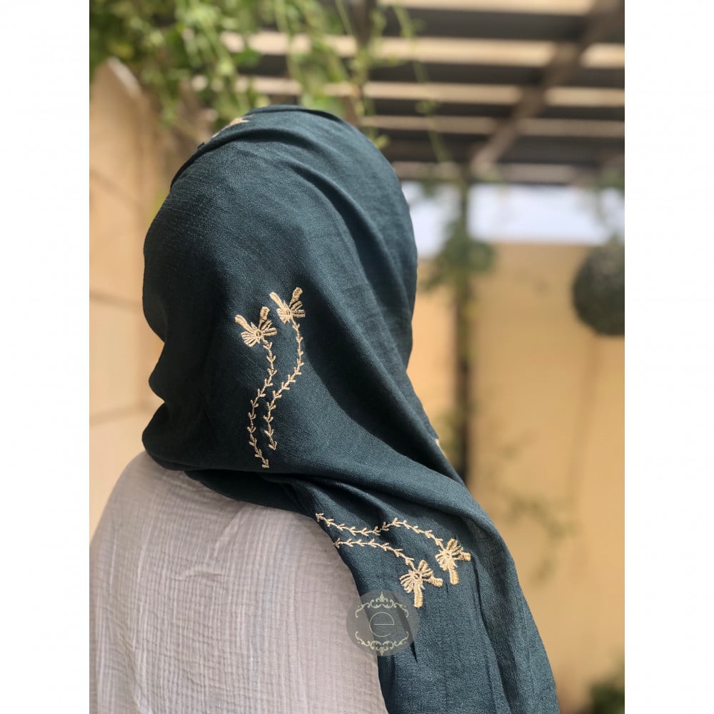 طرحة ليزر لون تيفاني بتطريز على طول الطرحة