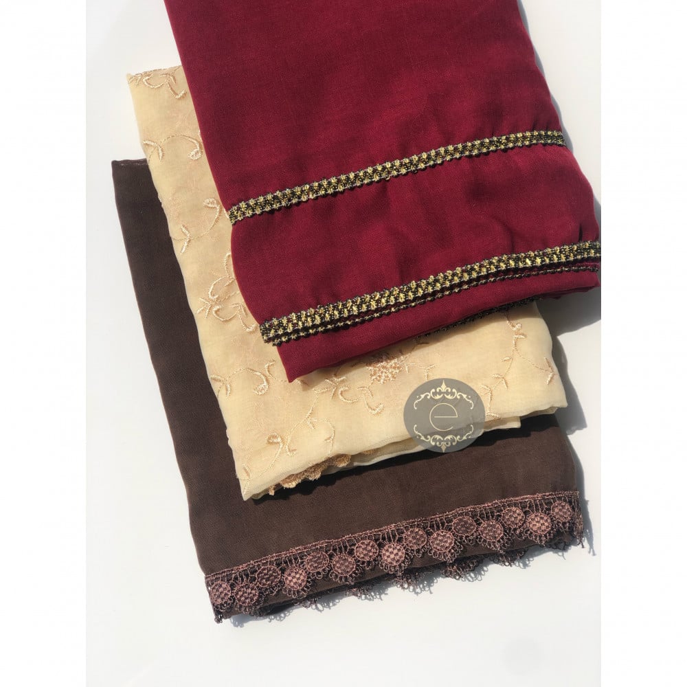 مجموعة 3 طرح (عودي /طرحة مطرزة من اختيارك / بني)