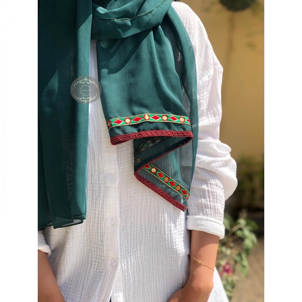 طرحة بوال لون اخضر بتطريز من الطرفين