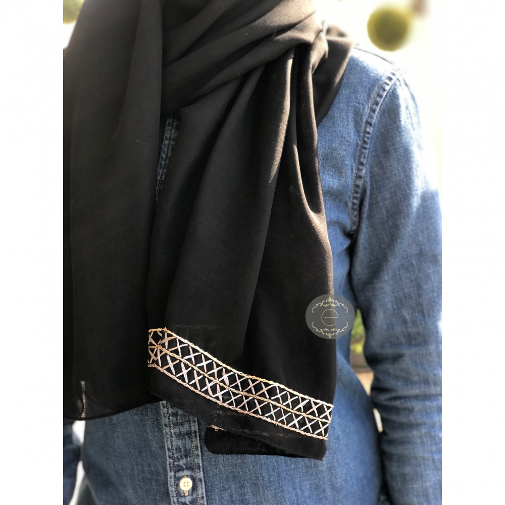 طرحه بوال بتطريز رجل الغراب لون اسود