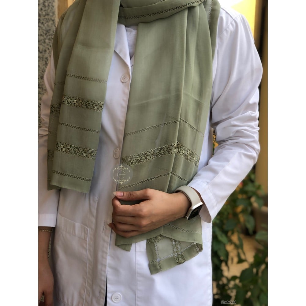 طرحة بوال بتطريز ورقة شجر لون بنك