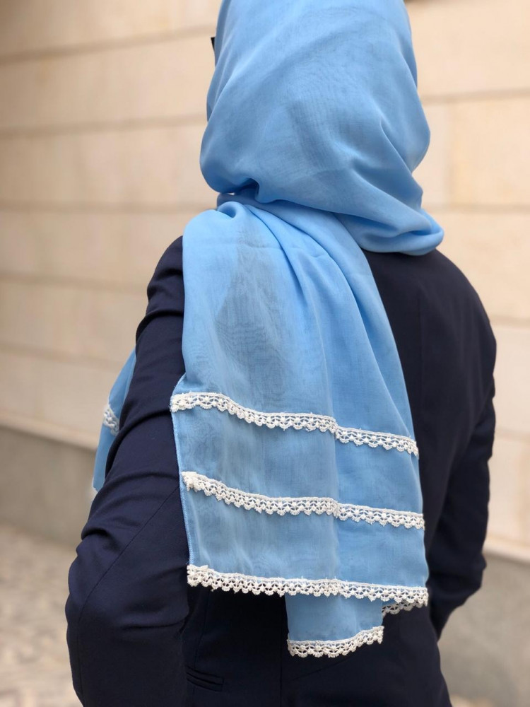 طرحة ليزر لون نيلي بتطريز على طول الطرحة