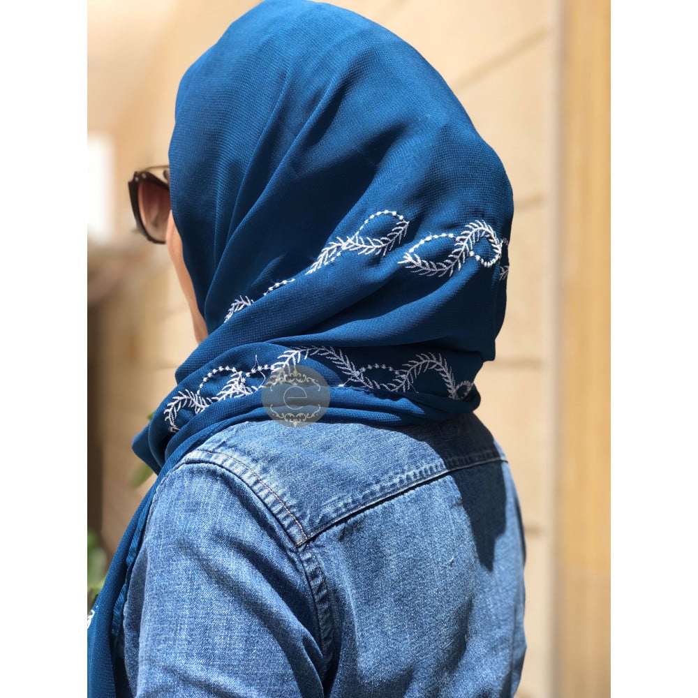 طرحة ليزر لون تركواز بتطريز على طول الطرحة