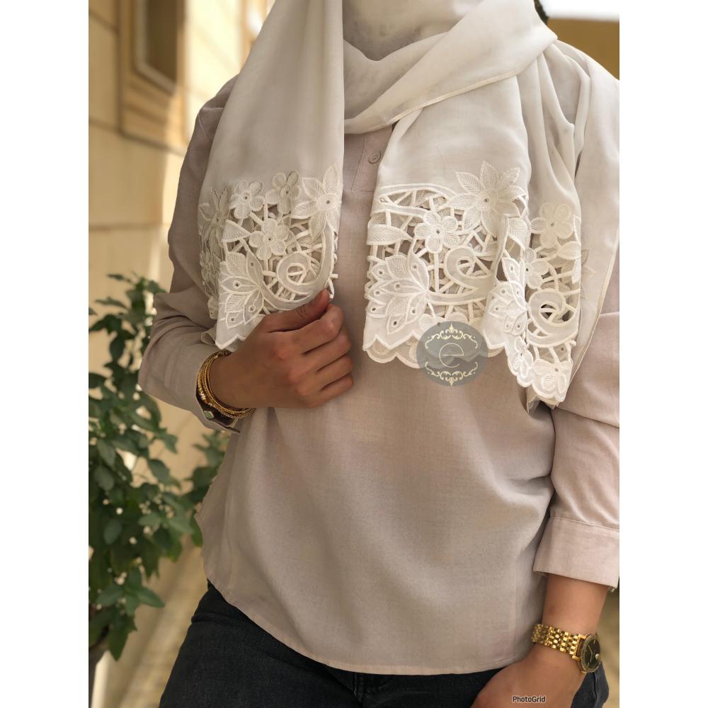 طرحة بوال لون ابيض بتطريز من الطرفين
