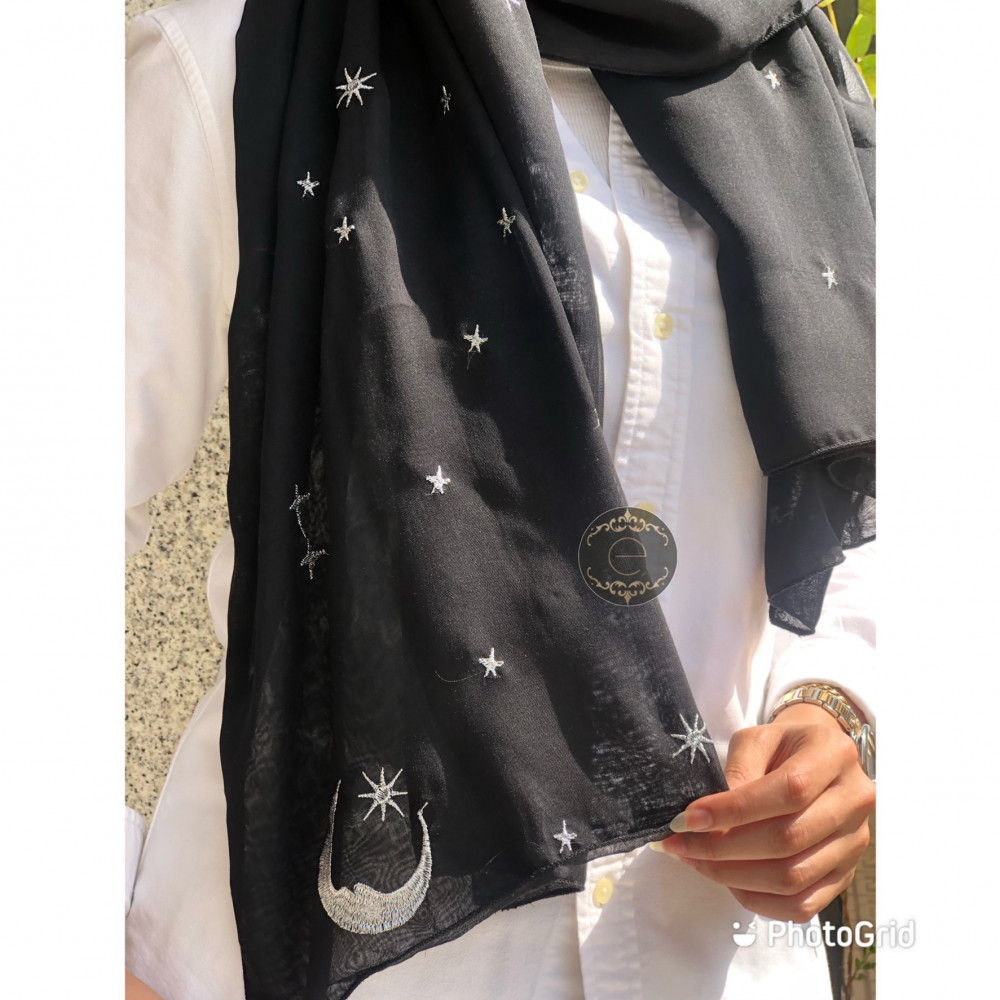طرحة بوال بتطريز نجوم وهلال لون اسود