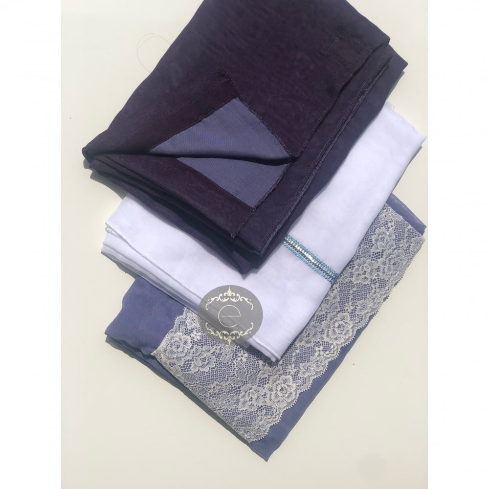 مجموعة 3 طرح(بنفسجي /وردي بتطريز / فوشي)