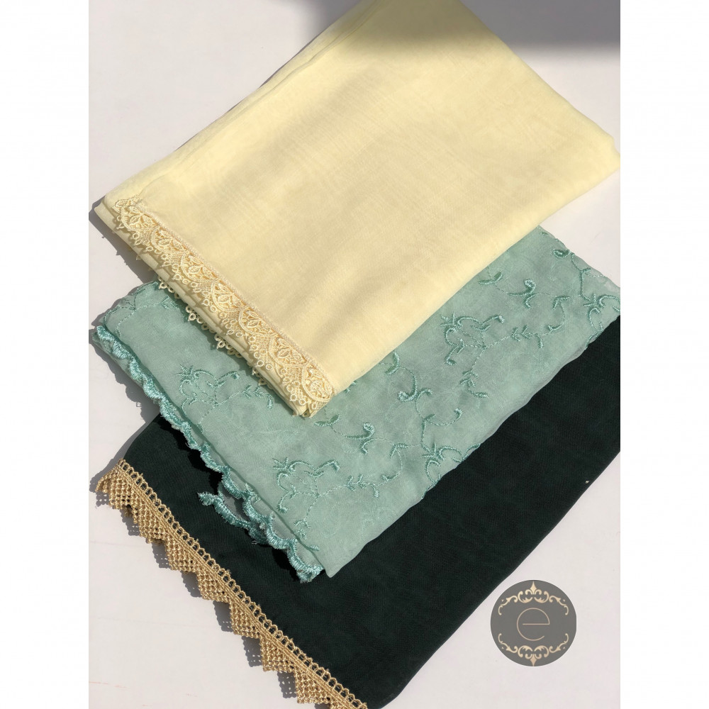 طرحة لنن لون بترولي بتطريز انيق بطول الطرحة